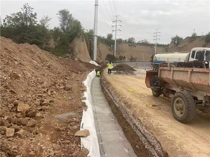 三號支線(xiàn)護腳墻勾縫、邊溝施工中。